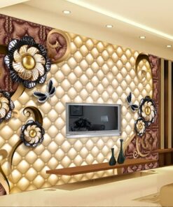 Gold Flowers on Brown Leather effect background 3D / 5D / 8D wall murals / custom wallpaper – DCWM20061323