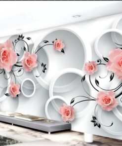 Pink flowers and White Circle Background 3D / 5D / 8D wall murals / custom wallpaper – DCWM20061322