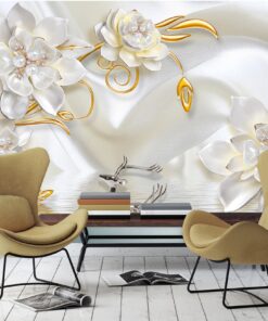 White and Gold Floral Custom Photomural wallpaper design is available in 3D, 5D and 8D print – DCWM0011563